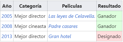 - Premio Mestre Mateo al Mejor Director en 2005 por The Laws of Celavella .