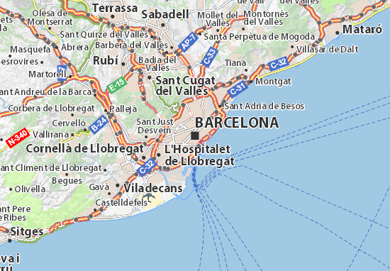 De este modo, Barcelona es la capital de la comarca del Barcelonés, la cual está formada por los municipios de Barcelona, Hospitalet de Llobregat, Badalona, Santa Coloma de Gramanet y San Adrián de Besós. Esta comarca limita al norte con el Vallés Occidental, al noreste con las comarcas del Vallés Oriental y del Maresme, al este y sureste con el mar Mediterráneo y al oeste con la comarca del Bajo Llobregat.
